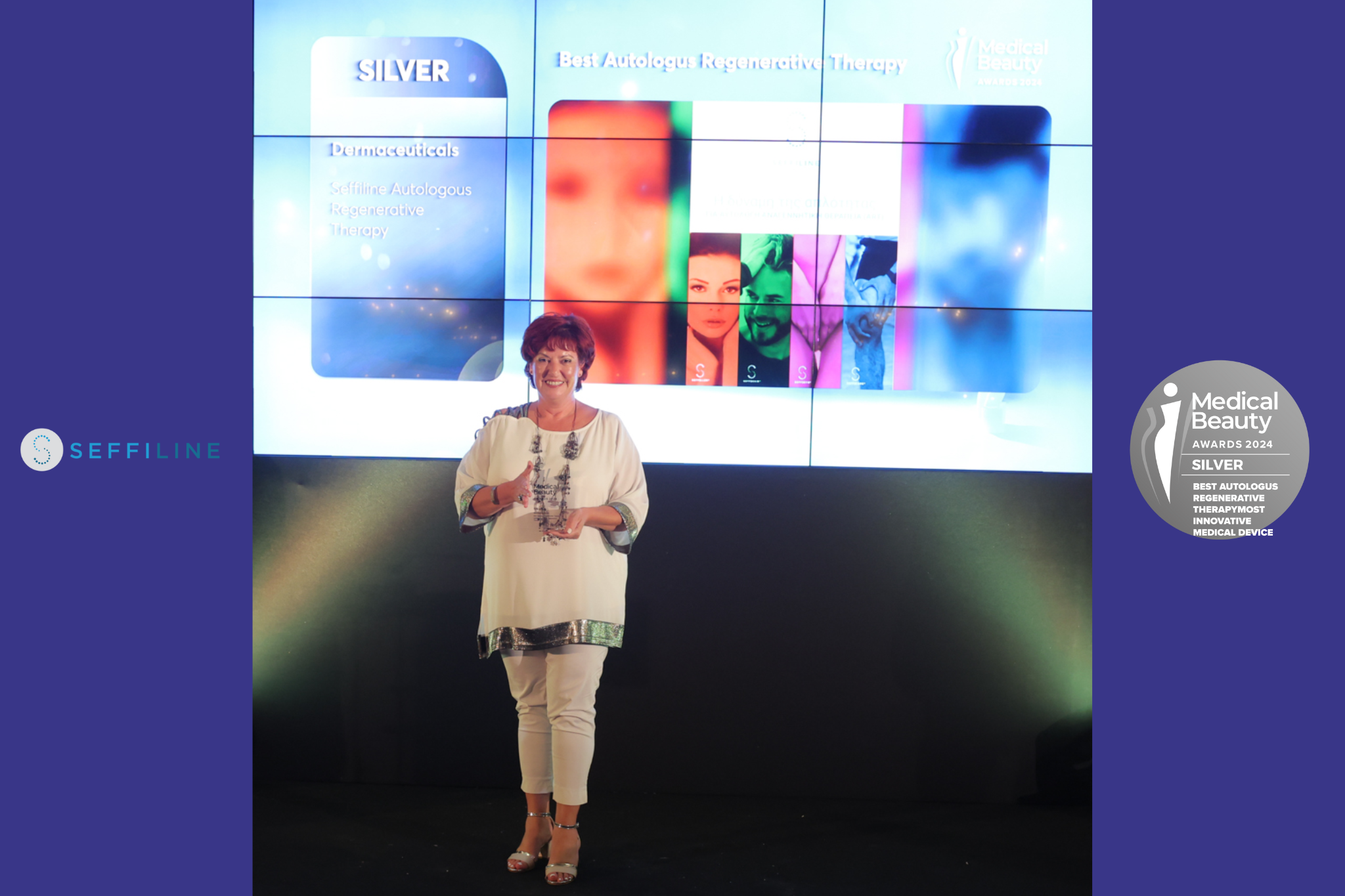 Silver στην κατηγορία «Best Autologous Regenerative Therapy: Για την καινοτόμo σειρά προϊόντων αναγεννητικής ιατρικής της Seffiline, η οποία φέρνει την επανάσταση στην αυτόλογη αισθητική ιατρική και αποτελείται από σετ μίας χρήσης που δίνουν σε ιατρούς όλων των ειδικοτήτων τη δυνατότητα να εκτελούν αναγεννητικές θεραπείες με εύκολο, ασφαλή και αποτελεσματικό τρόπο.